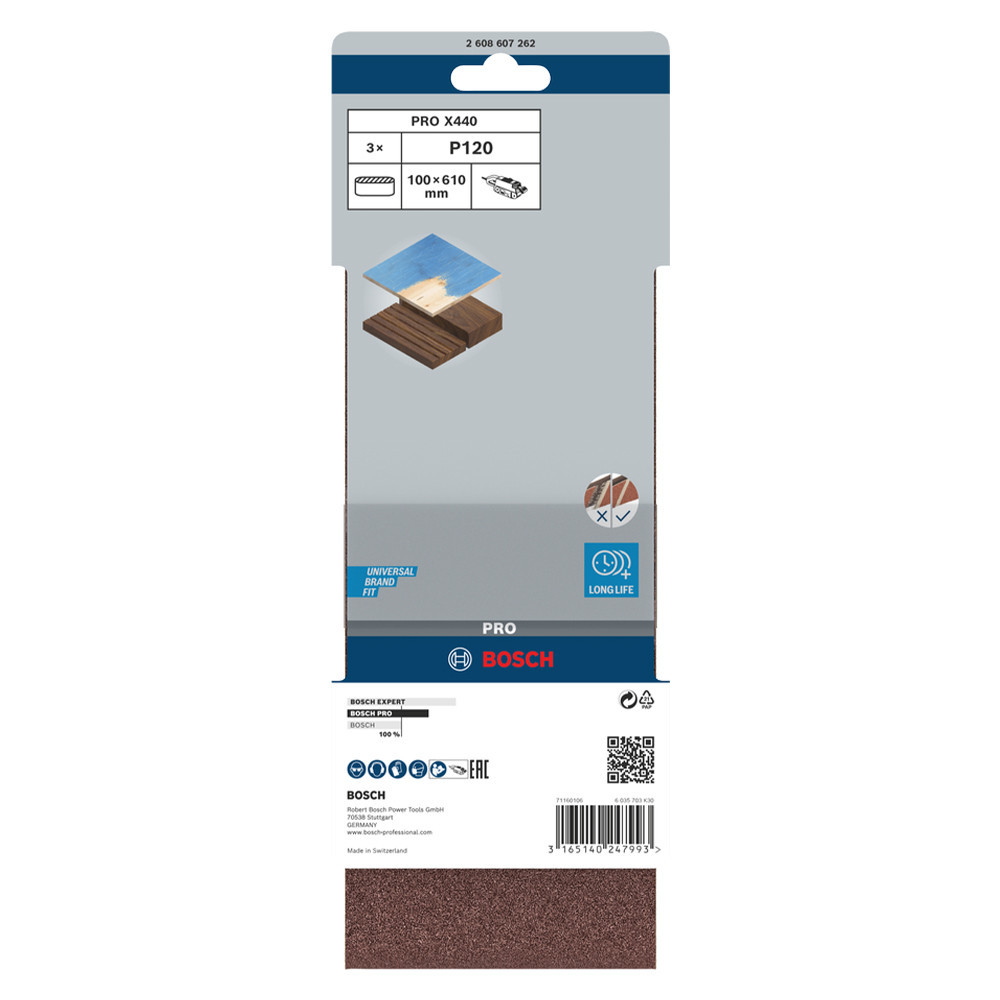 Bosch PRO X440 csiszolószalag, 100x610 mm, G120, fa, festék 3 db