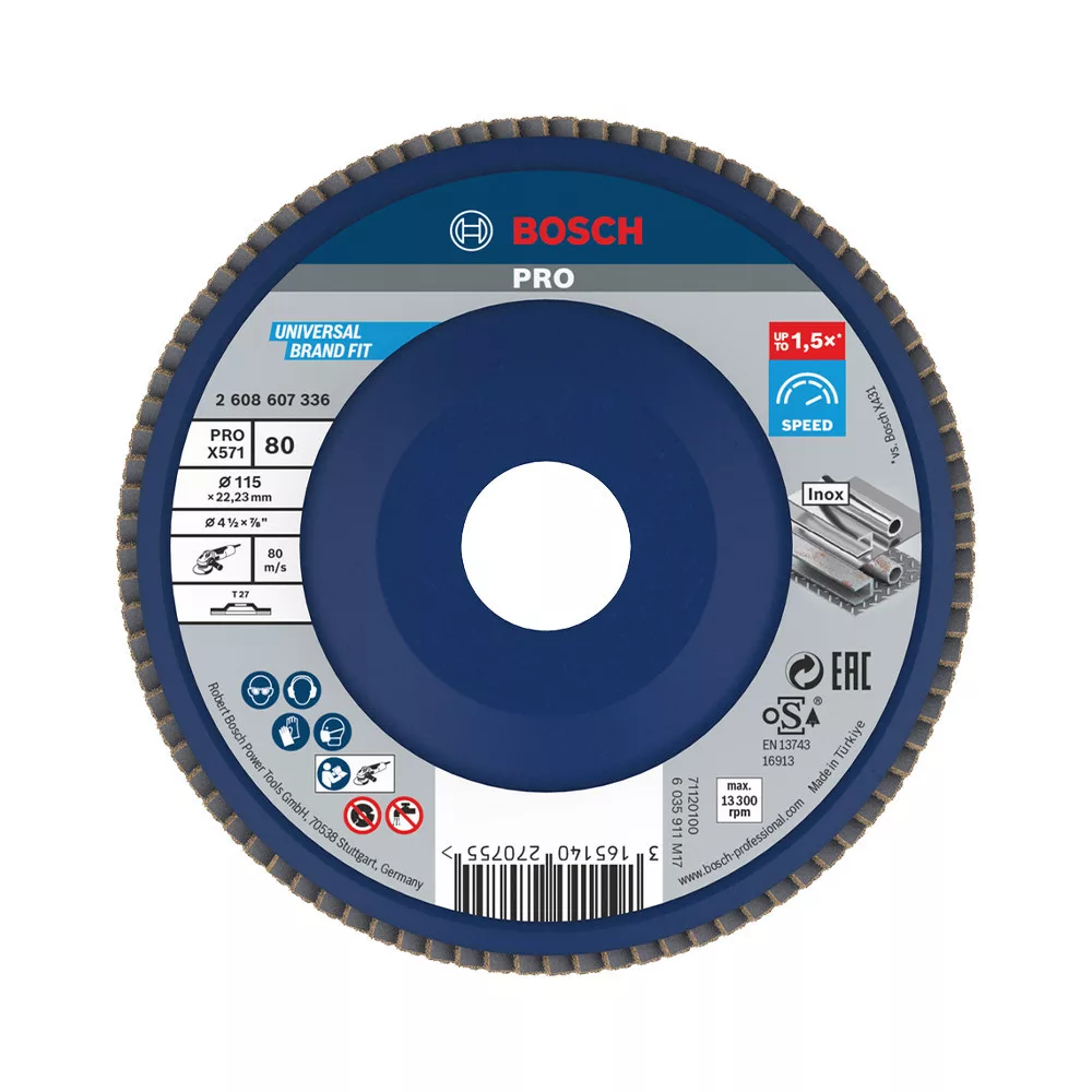 Bosch PRO X571 legyezőtárcsa, 115 mm, G80, inoxhoz, fémhez