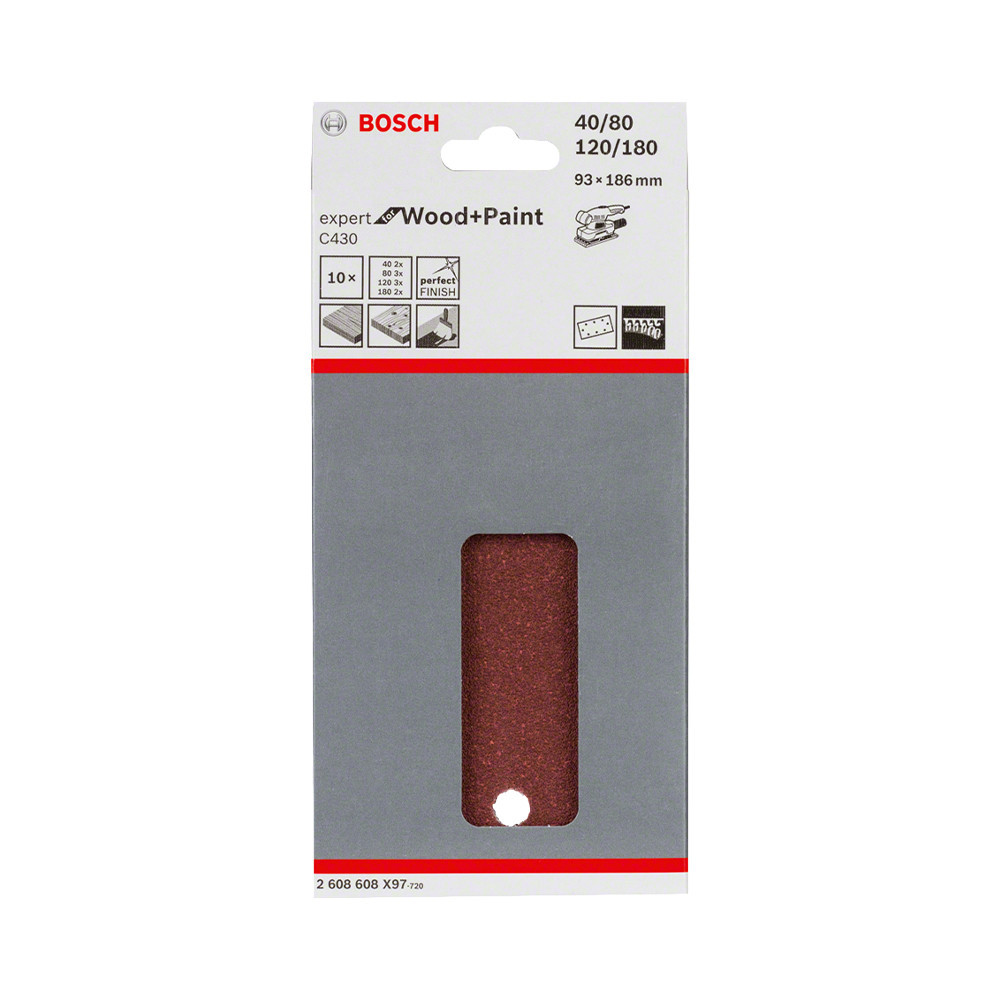Bosch EXPERT C430 csiszolópapír rezgőcsiszolókhoz, vegyes készlet 93x186mm, 10db