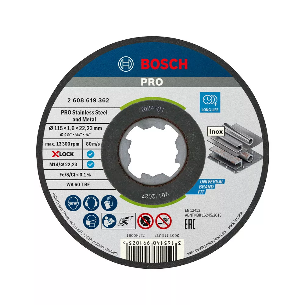 Bosch PRO Stainless Steel and Metal X-LOCK, M14 vágókorong, 115x1,6x22,23 mm, fémhez, inoxhoz