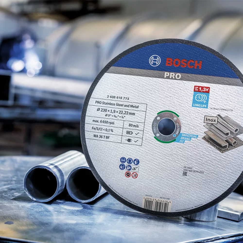 A PRO Stainless Steel and Metal kötőanyaggal készült vágótárcsa prémium minőségű alumínium-oxid szemcséket használ a szilárdság és tartósság érdekében. A csiszolószemcséket funkcionális töltőanyagokkal kombináltuk, és a szilárdság fokozása érdekében fenolgyantába ágyaztuk be. A vágótárcsát kiváló minőségű üvegszálas hálóval erősítettük meg a biztonságosabb és stabilabb teljesítmény érdekében. Plusz, fémmentessé tettük. Ez azt jelenti, hogy nem kell aggódnod a munkadarab rozsdásodása miatt, ha csak rozsdamentes acélt vágsz. Az alábbi anyag(ok)hoz ajánlott: acél, rozsdamentes acél