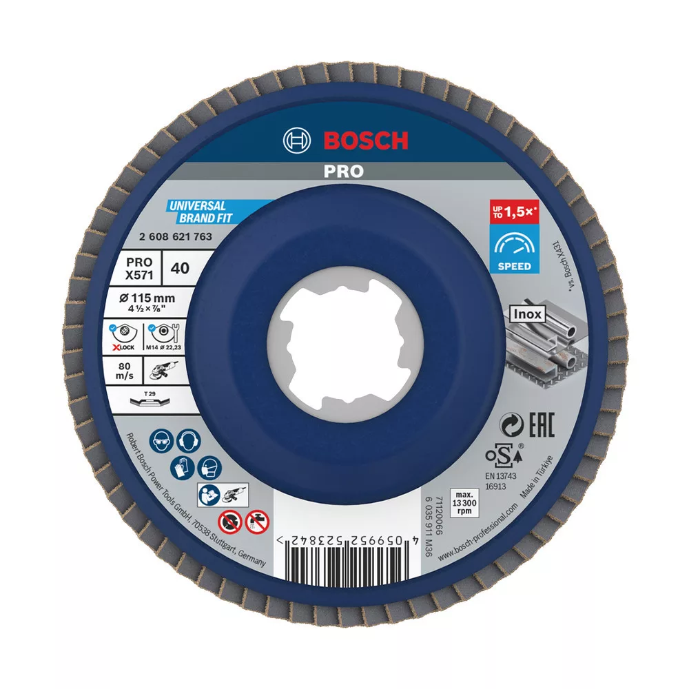 Bosch PRO X571 X-LOCK, M14 legyezőtárcsa, 115 mm, G40, fémhez, inoxhoz