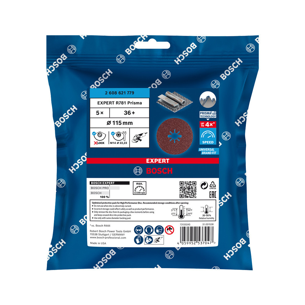 Bosch EXPERT R781 Prisma kerámiaszemcsés fíbertárcsa fémhez, 5db X-LOCK 115mm, G36+