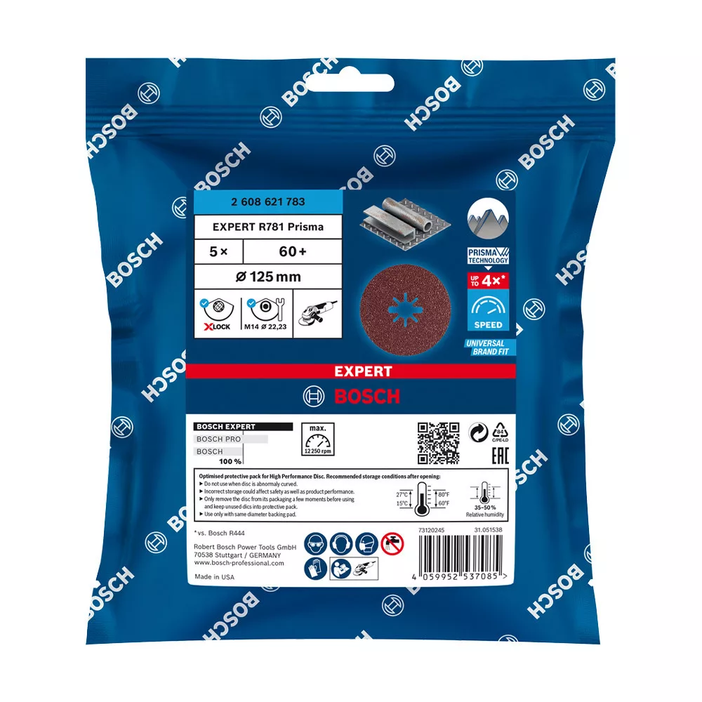 Bosch EXPERT R781 Prisma kerámiaszemcsés fíbertárcsa fémhez, 5db X-LOCK 125mm, G60+
