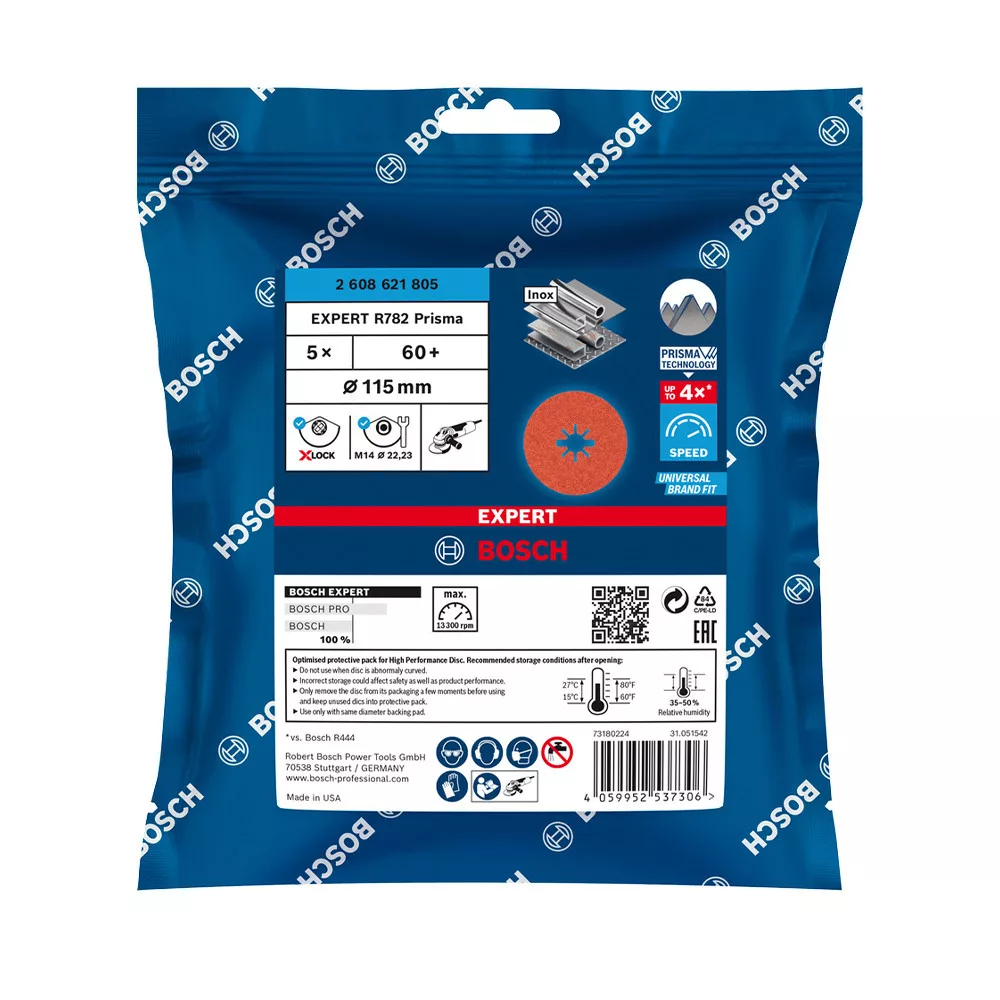 Bosch EXPERT R782 X-LOCK Prisma kerámiaszemcsés fíbertárcsa Inoxhoz, 5db 115mm, G60+