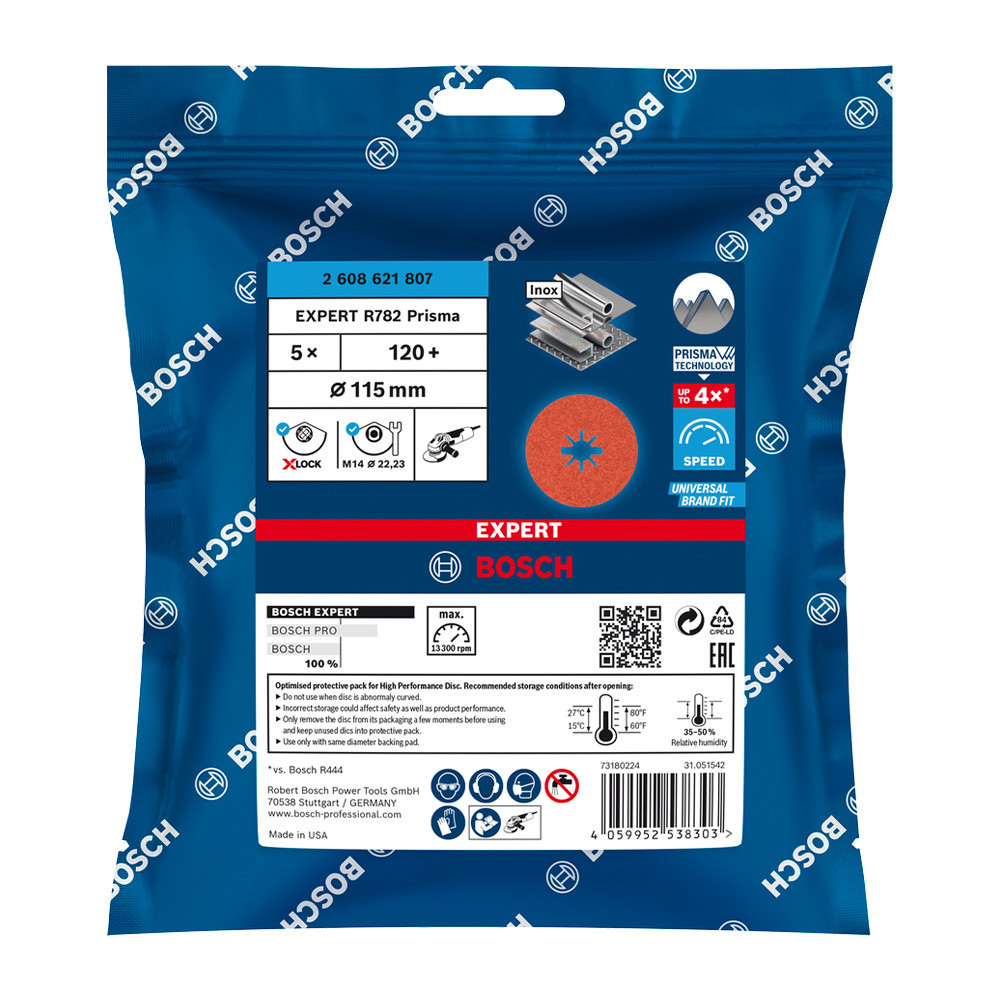 Bosch EXPERT R782 X-LOCK Prisma kerámiaszemcsés fíbertárcsa Inoxhoz, 5db 115mm, G120+