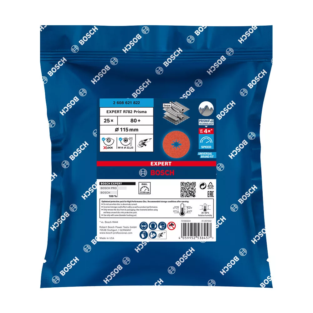 Bosch EXPERT R782 X-LOCK Prisma kerámiaszemcsés fíbertárcsa Inoxhoz, 25db 115mm, G80+