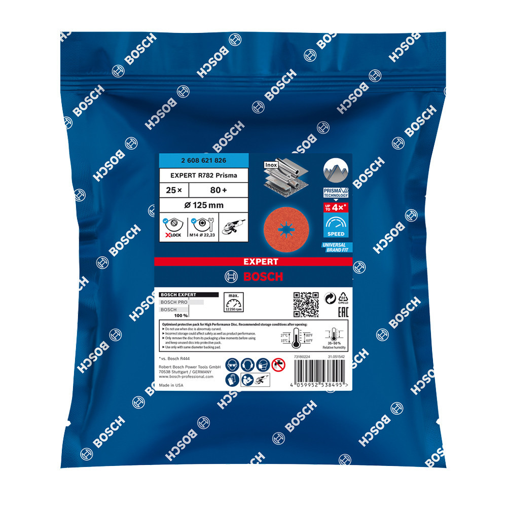 Bosch EXPERT R782 X-LOCK Prisma kerámiaszemcsés fíbertárcsa Inoxhoz, 25db 125mm, G80+