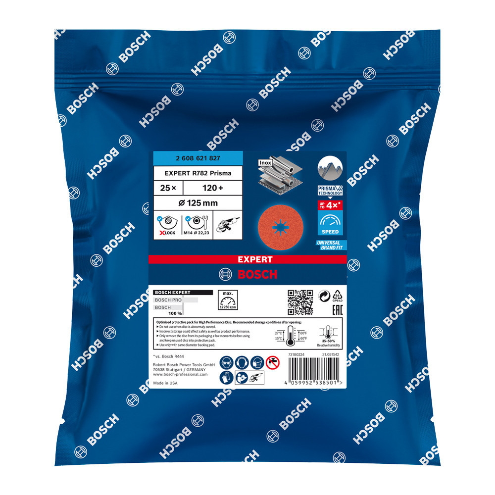 Bosch EXPERT R782 X-LOCK Prisma kerámiaszemcsés fíbertárcsa Inoxhoz, 25db 125mm, G120+