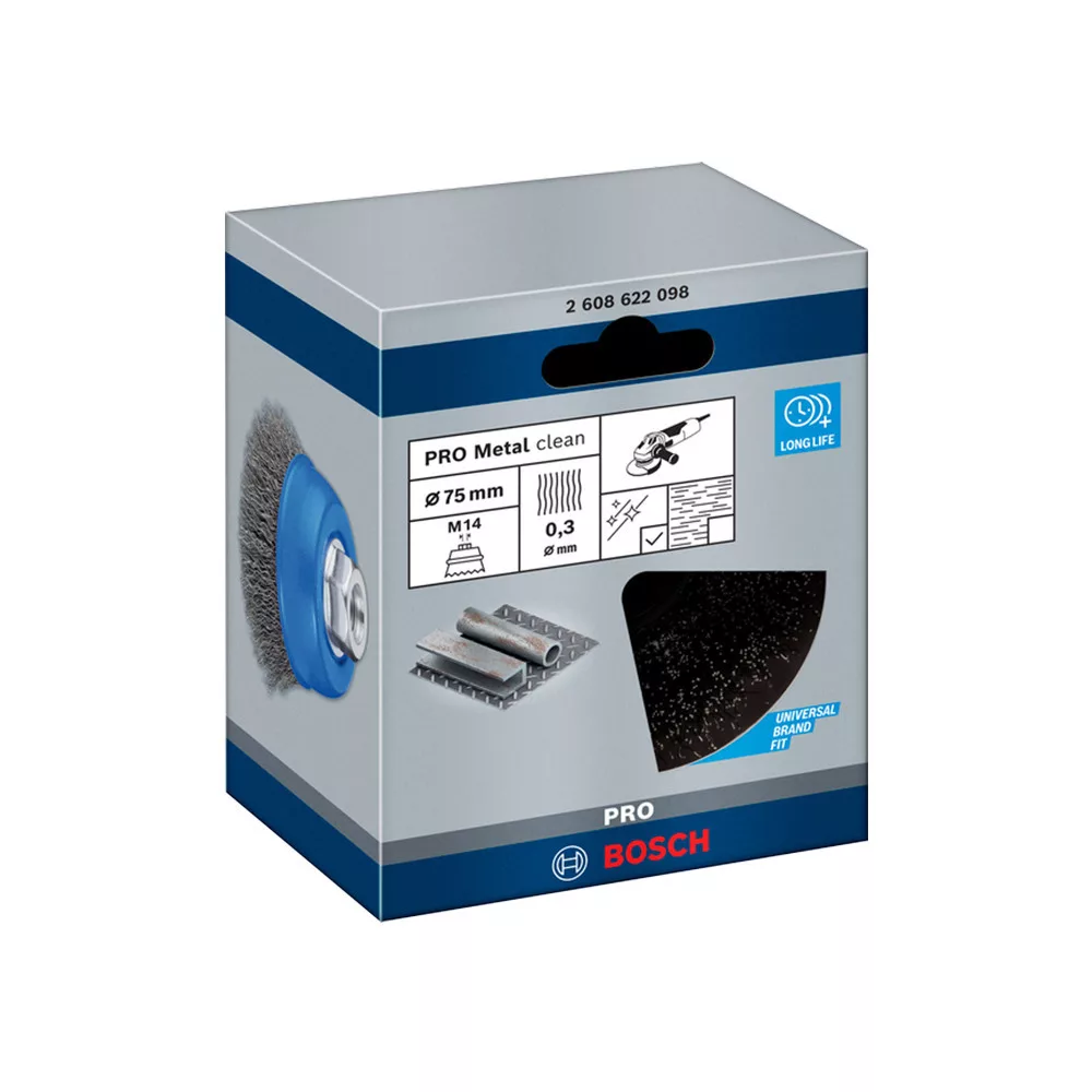 Bosch PRO Metal clean hullámos fazékkefe, 70x0,3 mm, M14 menetes, fémhez