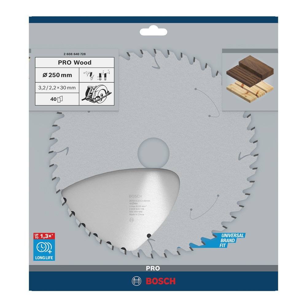 Bosch PRO Wood körfűrészlap, 250x3,2x30 mm 40 fog, kemény fa, rétegelt lemez, forgácslap