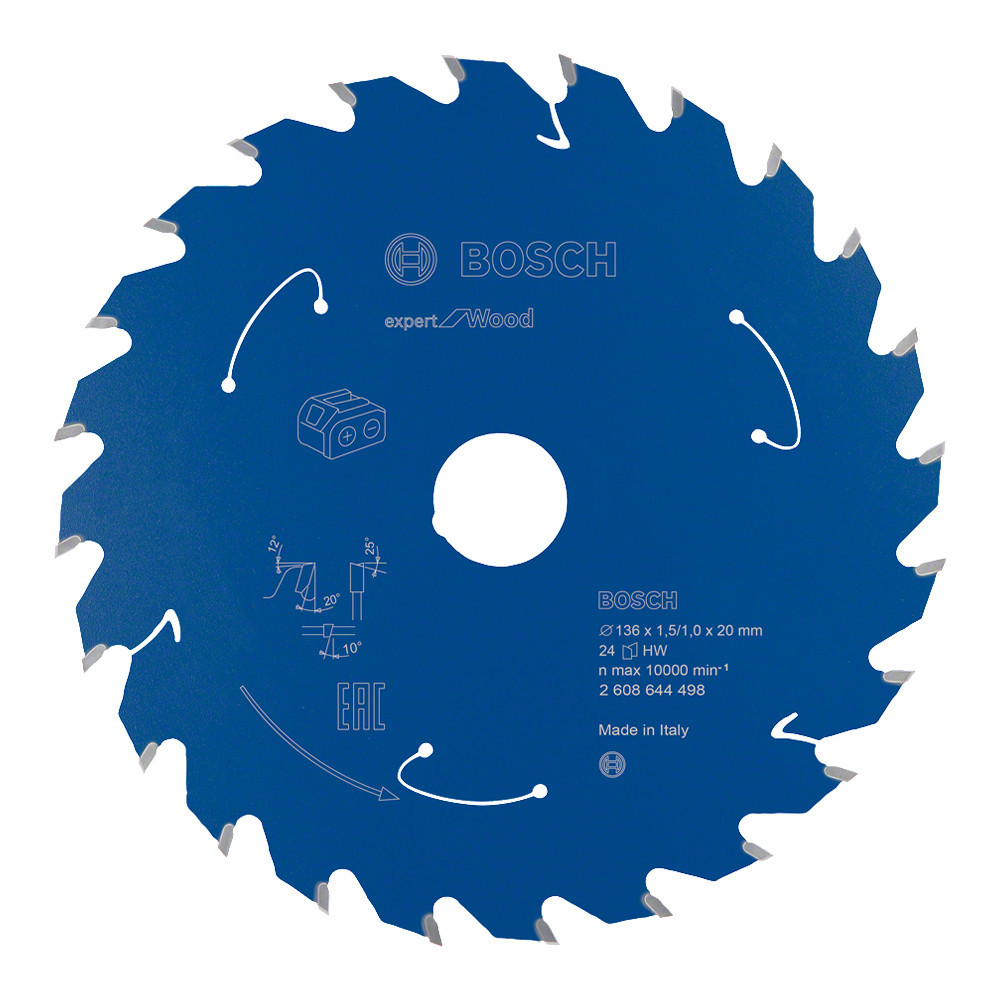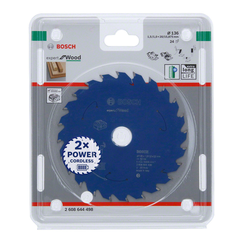 Bosch EXPERT Wood körfűrészlap akkumulátoros körfűrészekhez 136x1,5/1,2 20 mm, T24 fog, fához