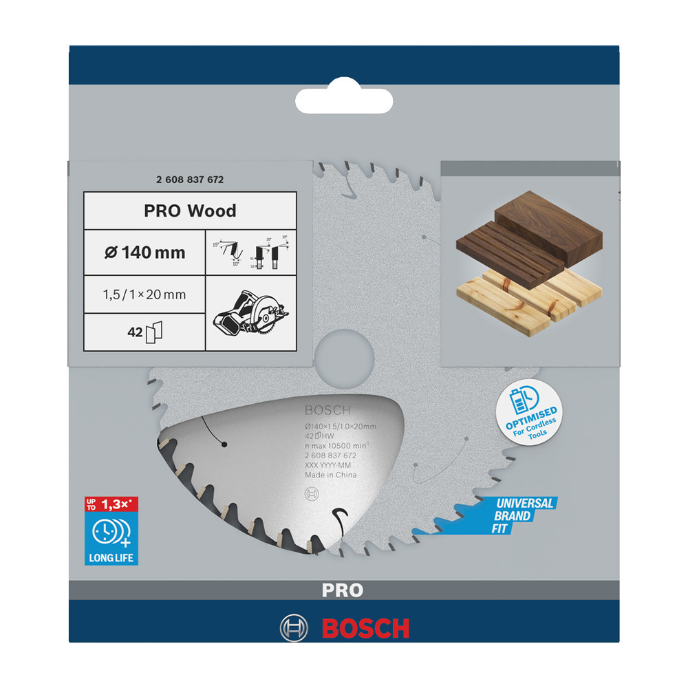 Bosch PRO Wood körfűrészlap akkus géphez, 140x1,5x20 mm 42 fog, kemény fa, forgácslap