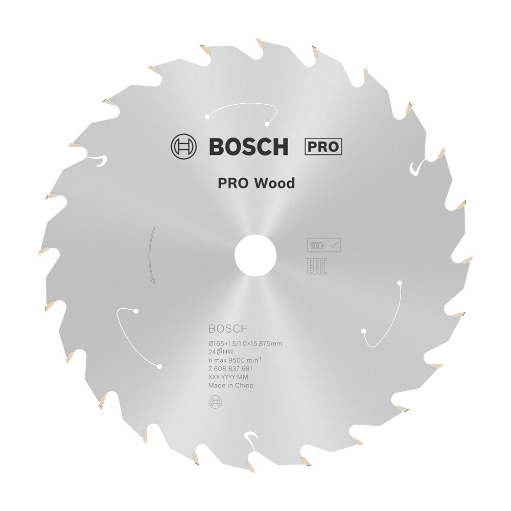 Bosch PRO Wood körfűrészlap akkus géphez, 165x1,5x15,875 mm 24 fog, kemény fa, forgácslap