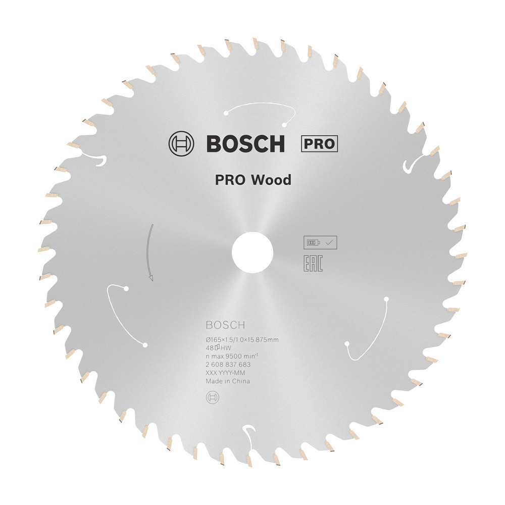 Bosch PRO Wood körfűrészlap akkus géphez, 165x1,5x15,875 mm 48 fog, kemény fa, forgácslap