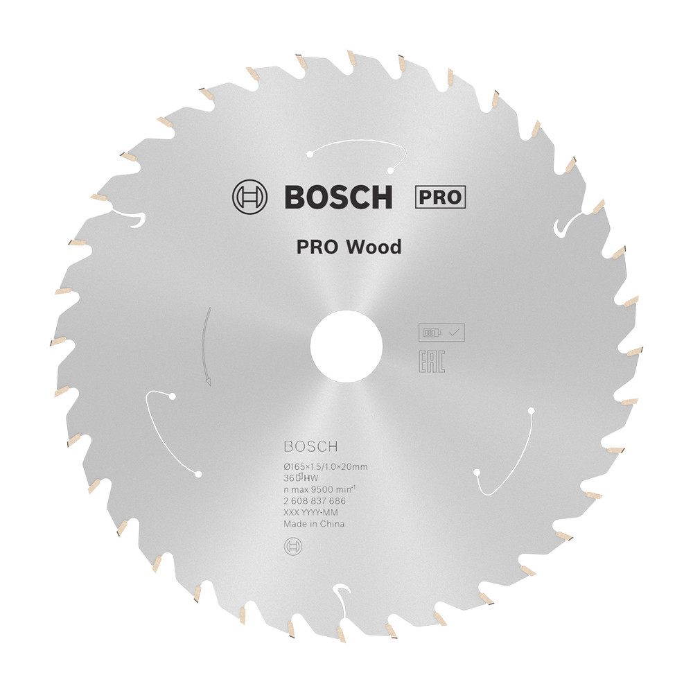 Bosch PRO Wood körfűrészlap akkus géphez, 165x1,5x20 mm 36 fog, kemény fa, forgácslap