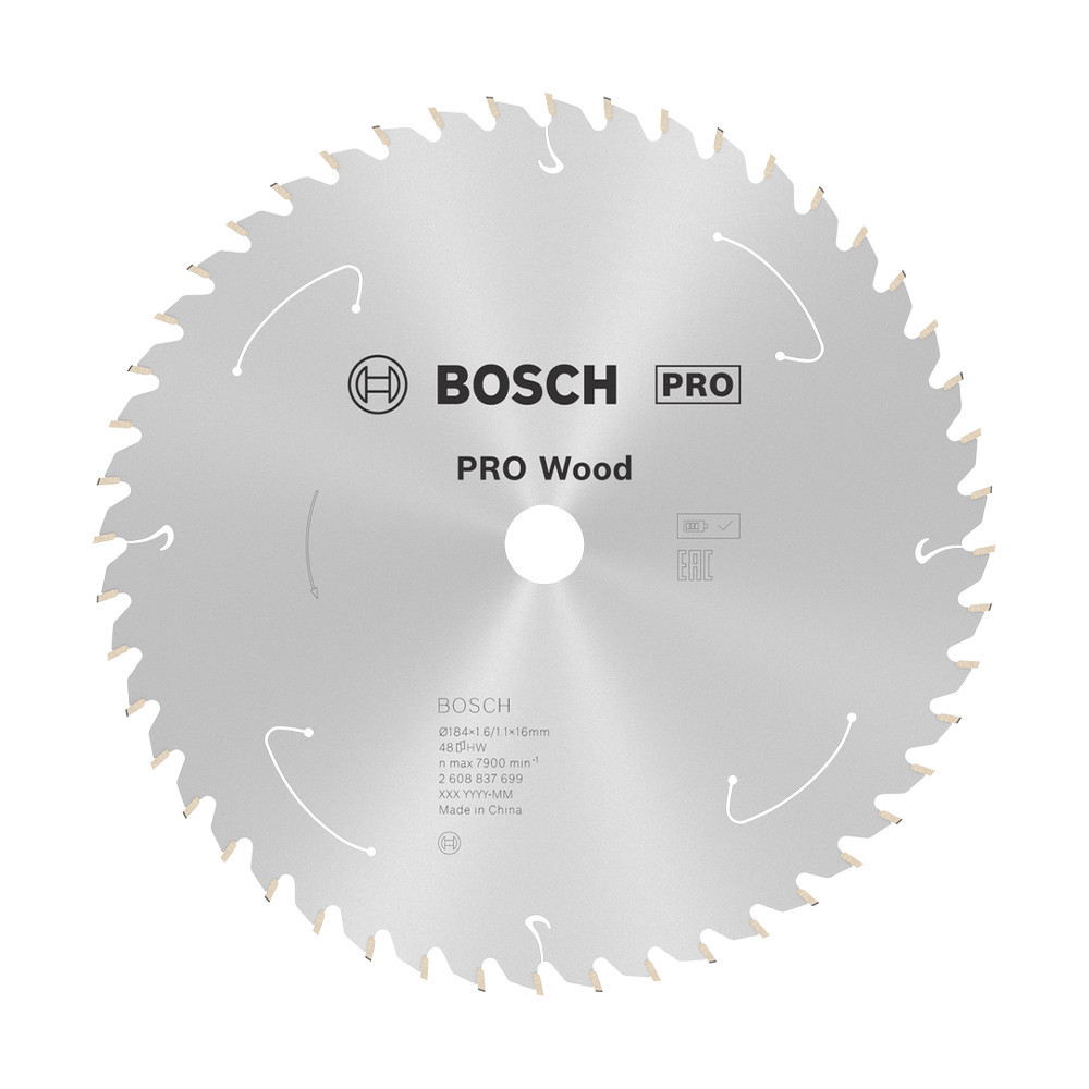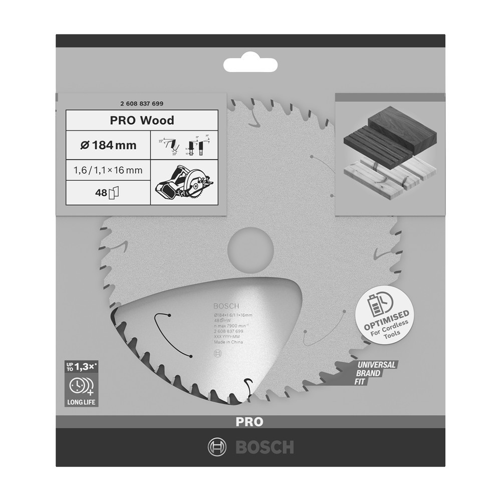 Bosch PRO Wood körfűrészlap akkus géphez, 184x1,6x16 mm 48 fog, kemény fa, forgácslap