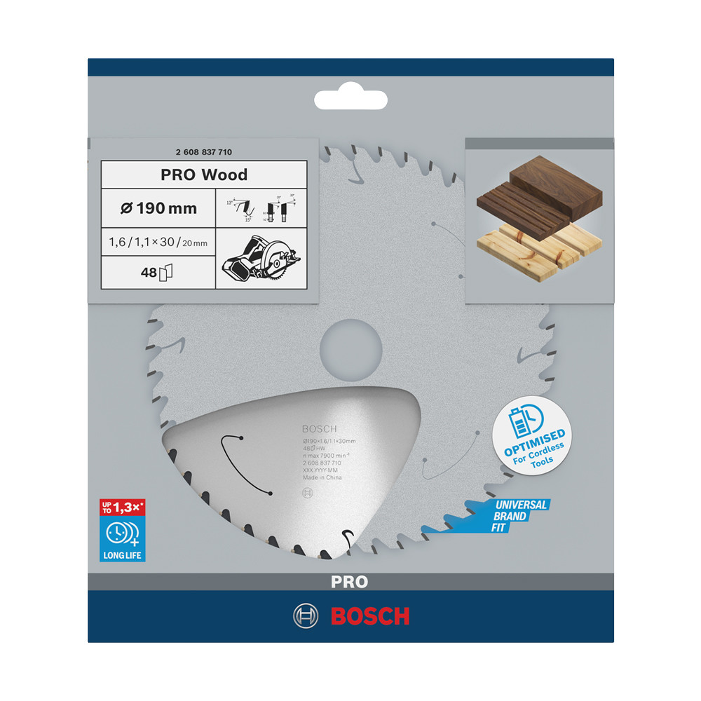 Bosch PRO Wood körfűrészlap akkus géphez, 190x1,6x30 mm 48 fog, kemény fa, forgácslap