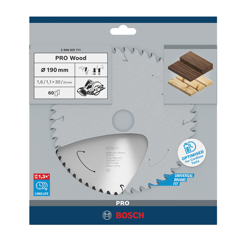 Bosch PRO Wood körfűrészlap akkus géphez, 190x1,6x30 mm 60 fog, kemény fa, forgácslap