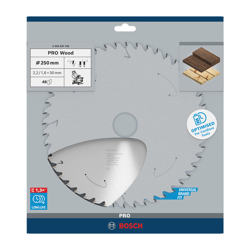 Bosch PRO Wood körfűrészlap akkus géphez, 250x2,2x30 mm 48 fog, kemény fa, forgácslap