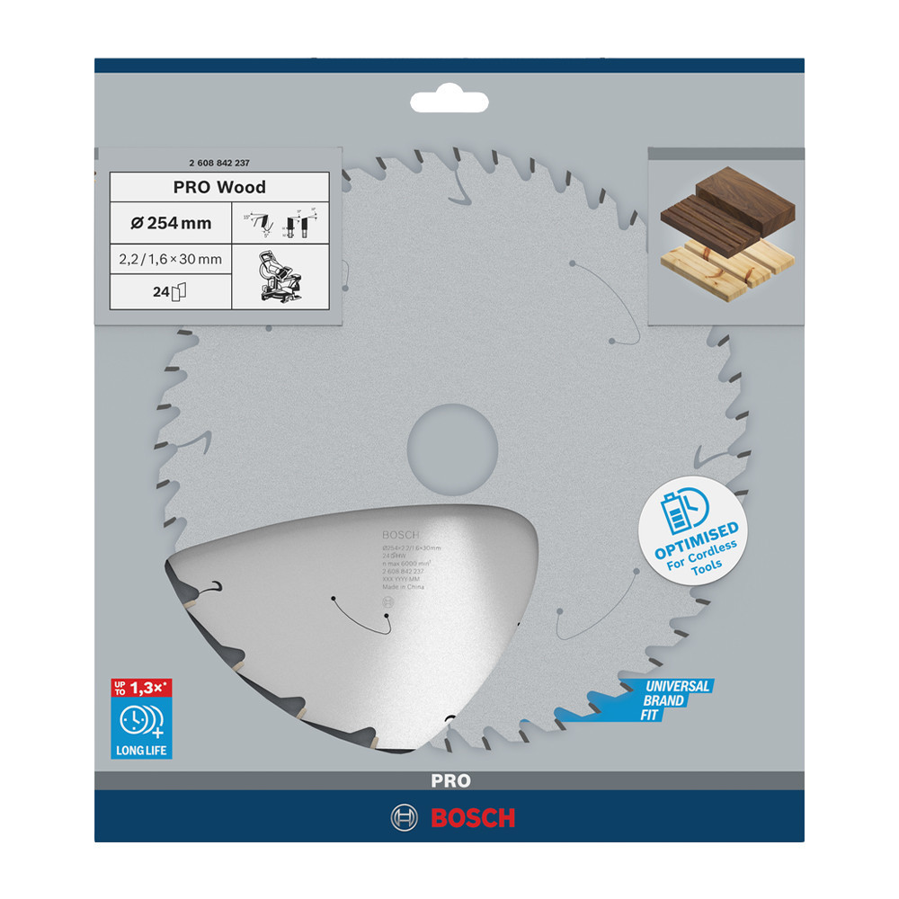 Bosch PRO Wood körfűrészlap akkus géphez, 254x2,2x30 mm 24 fog, kemény fa, forgácslap