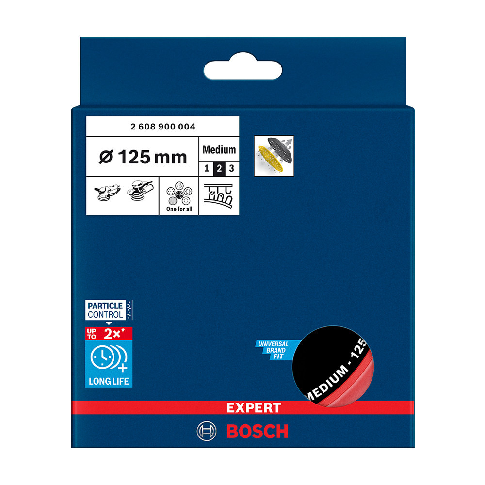Hosszú élettartamú csiszolólapok - Az EXPERT Multihole többlyukú alátéttányér a Bosch Particle Control rendszerének szerves része. A lyukak látszólag véletlenszerű elhelyezkedése alapos kutatás eredményeként alakult így: matematikailag mindig elegendő lyuk áll párhuzamosan a papírral, ami optimális porelszívást biztosít. Így a csiszolólapok nem tömődnek el, és hosszabb ideig használhatók. Kemény, közepes és puha változatban kaphatók, az aktuálisan végzett csiszolás jellegétől függően. Csak ragaszd fel tépőzárral