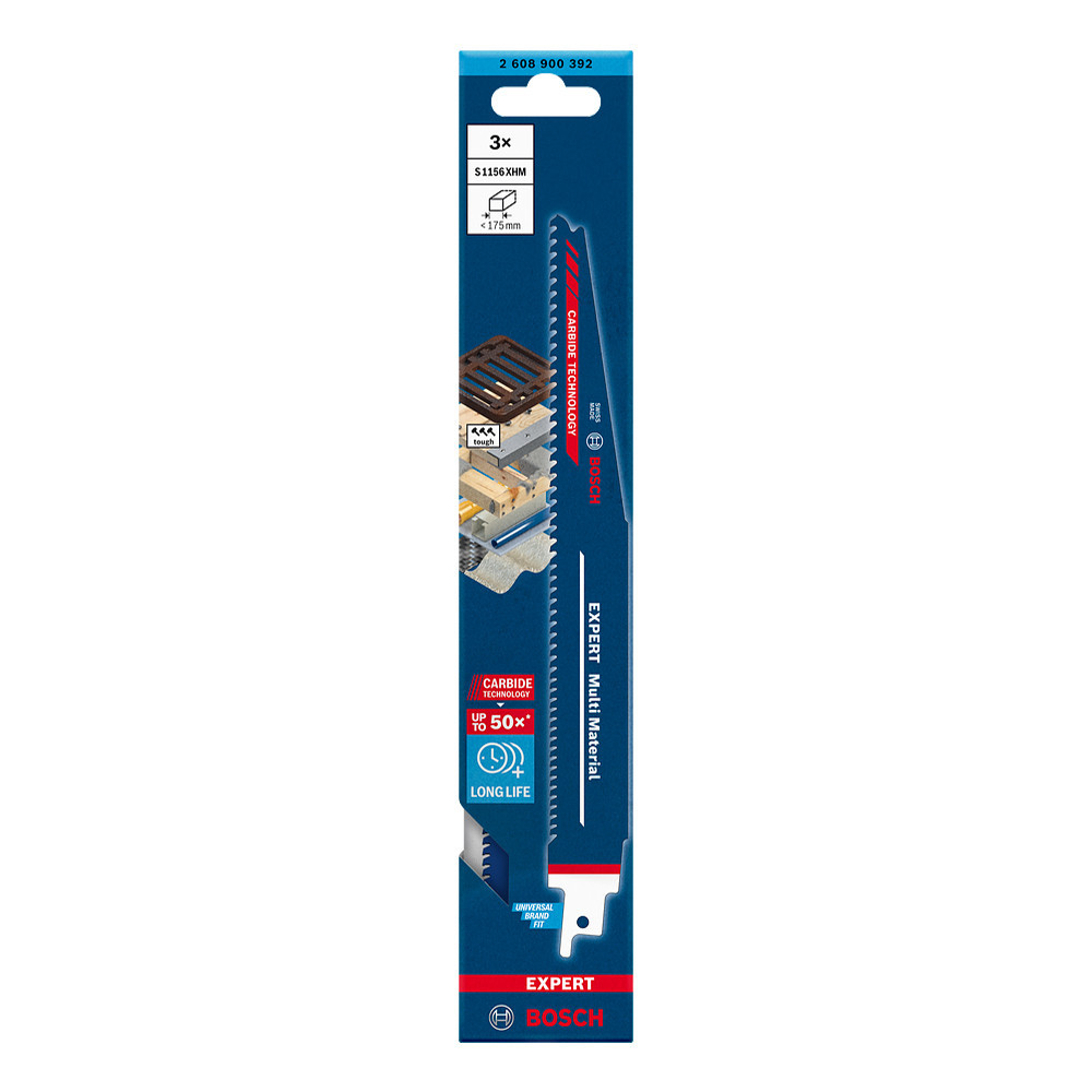 Szívós építőanyagok vágására, hosszú élettartammal - A Bosch EXPERT 'Multi Material' szablyafűrészlap valódi megoldás a modern munkaterületeken egyszerűen nem kellően tartós fűrészlapok problémájára, mely megbízható partnerként nemcsak fémet és fát vág. Az építkezéseken használt műanyagok, építőipari kompozitok és előregyártott elemek mind megbízhatóan vághatók a Bosch Carbide Technology megoldásnak köszönhetően. A progresszív fogosztás vékony és vastag anyagok vágására egyaránt alkalmas. Minden S befogószárú szablyafűrészhez használható