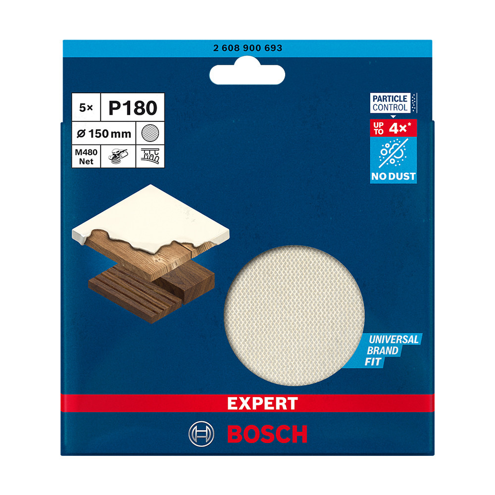 Bosch EXPERT M480 csiszolóháló excentercsiszolókhoz 150 mm, G180, 5 db keményfa, festék