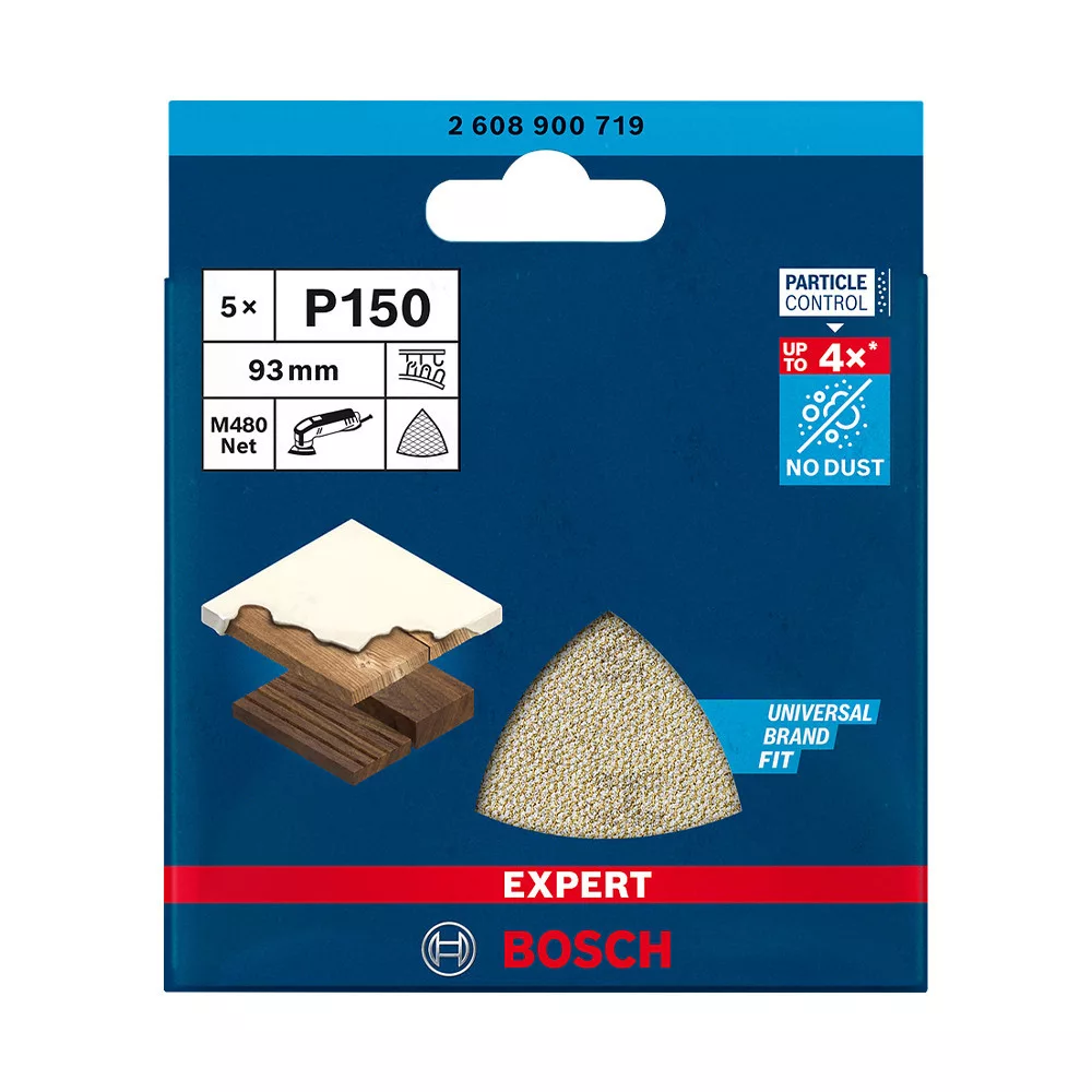 Fejlett porcsökkentés fa, festék és gipszkarton csiszolásakor - A Bosch Particle Control gondoskodik arról, hogy minden porszemcse a porszívóba vagy a szűrőbe kerüljön. A rendszer elsődleges eleme a Bosch EXPERT M480 csiszolóháló: A részecskék egyenesen áthaladnak a nyitott hálóstruktúráján, így nem tömítik el a felületet és nem szennyezik a levegőt. Ezáltal kiemelten hatékony és rendkívül tartós is. Csak ragaszd fel tépőzárral
