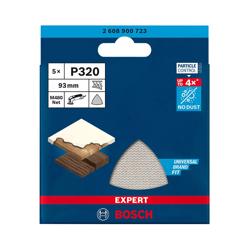 Fejlett porcsökkentés fa, festék és gipszkarton csiszolásakor - A Bosch Particle Control gondoskodik arról, hogy minden porszemcse a porszívóba vagy a szűrőbe kerüljön. A rendszer elsődleges eleme a Bosch EXPERT M480 csiszolóháló: A részecskék egyenesen áthaladnak a nyitott hálóstruktúráján, így nem tömítik el a felületet és nem szennyezik a levegőt. Ezáltal kiemelten hatékony és rendkívül tartós is. Csak ragaszd fel tépőzárral