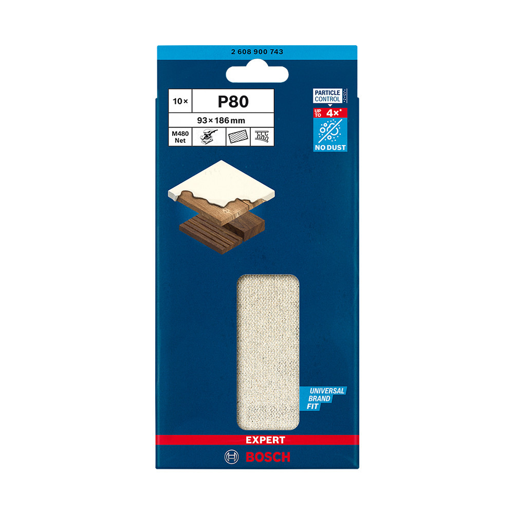 Fejlett porcsökkentés fa, festék és gipszkarton csiszolásakor - A Bosch Particle Control gondoskodik arról, hogy minden porszemcse a porszívóba vagy a szűrőbe kerüljön. A rendszer elsődleges eleme a Bosch EXPERT M480 csiszolóháló: A részecskék egyenesen áthaladnak a nyitott hálóstruktúráján, így nem tömítik el a felületet és nem szennyezik a levegőt. Ezáltal kiemelten hatékony és rendkívül tartós is. Csak ragaszd fel tépőzárral