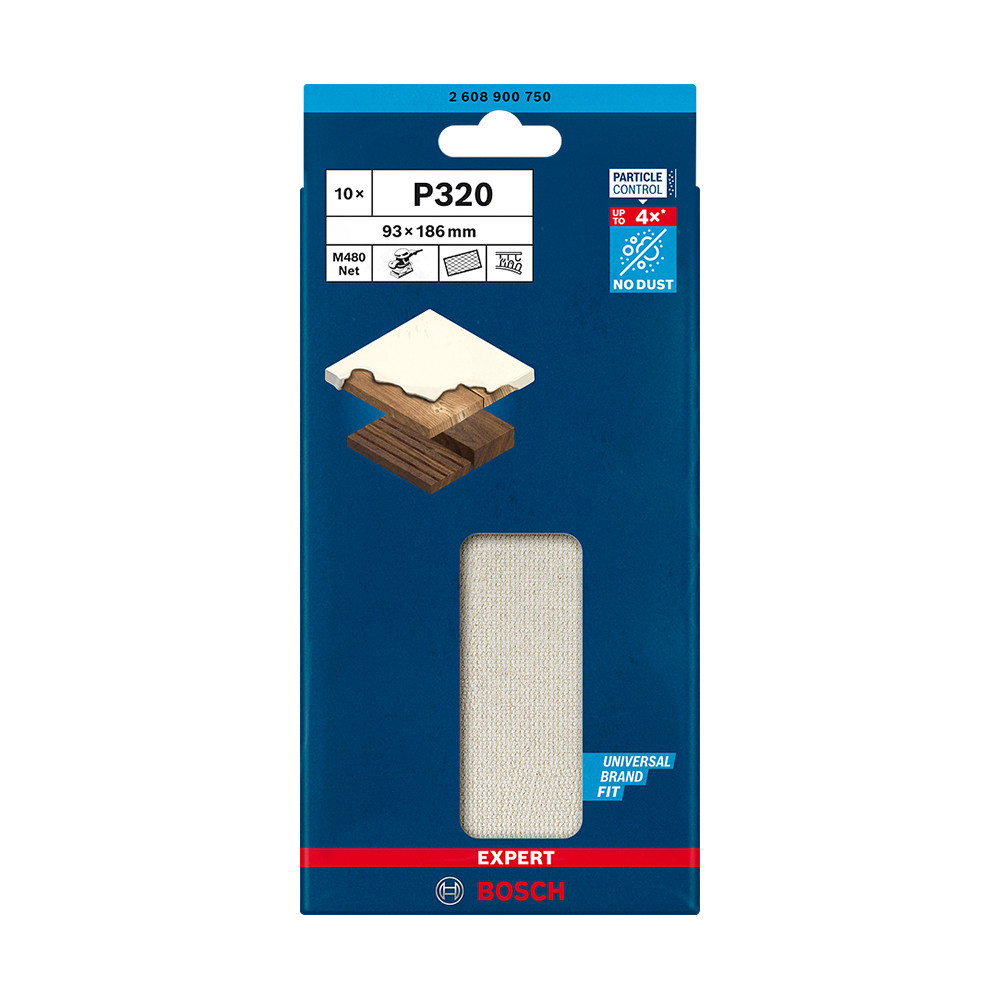 Bosch EXPERT M480 csiszolóháló rezgőcsiszolókhoz, 10 db 93x186 mm, P320
