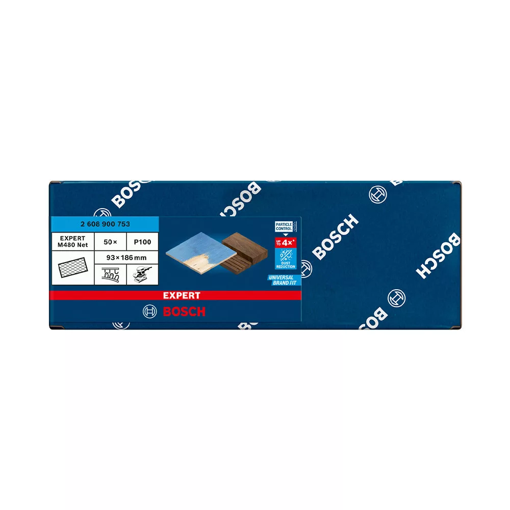 Fejlett porcsökkentés fa, festék és gipszkarton csiszolásakor - A Bosch Particle Control gondoskodik arról, hogy minden porszemcse a porszívóba vagy a szűrőbe kerüljön. A rendszer elsődleges eleme a Bosch EXPERT M480 csiszolóháló: A részecskék egyenesen áthaladnak a nyitott hálóstruktúráján, így nem tömítik el a felületet és nem szennyezik a levegőt. Ezáltal kiemelten hatékony és rendkívül tartós is. Csak ragaszd fel tépőzárral
