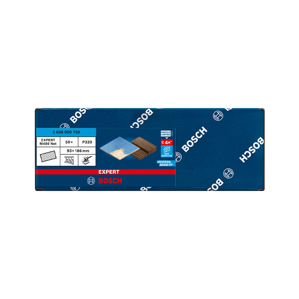 Fejlett porcsökkentés fa, festék és gipszkarton csiszolásakor - A Bosch Particle Control gondoskodik arról, hogy minden porszemcse a porszívóba vagy a szűrőbe kerüljön. A rendszer elsődleges eleme a Bosch EXPERT M480 csiszolóháló: A részecskék egyenesen áthaladnak a nyitott hálóstruktúráján, így nem tömítik el a felületet és nem szennyezik a levegőt. Ezáltal kiemelten hatékony és rendkívül tartós is. Csak ragaszd fel tépőzárral