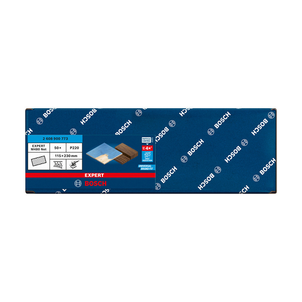 Fejlett porcsökkentés fa, festék és gipszkarton csiszolásakor - A Bosch Particle Control gondoskodik arról, hogy minden porszemcse a porszívóba vagy a szűrőbe kerüljön. A rendszer elsődleges eleme a Bosch EXPERT M480 csiszolóháló: A részecskék egyenesen áthaladnak a nyitott hálóstruktúráján, így nem tömítik el a felületet és nem szennyezik a levegőt. Ezáltal kiemelten hatékony és rendkívül tartós is. Csak ragaszd fel tépőzárral