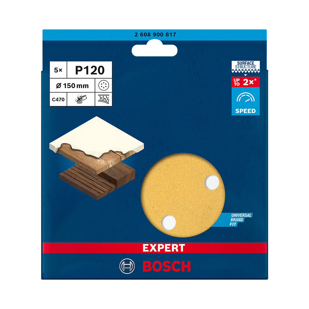 Bosch EXPERT C470 csiszolópapír excentercsiszolókhoz, fa, festék 150mm, G120, 5db