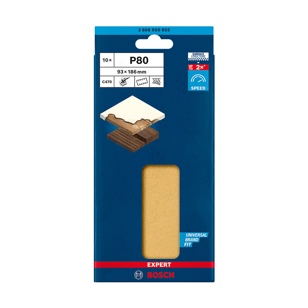 Bosch EXPERT C470 csiszolópapír rezgőcsiszolókhoz, fa, festék 93x186 mm, G80, 8 lyuk 10db