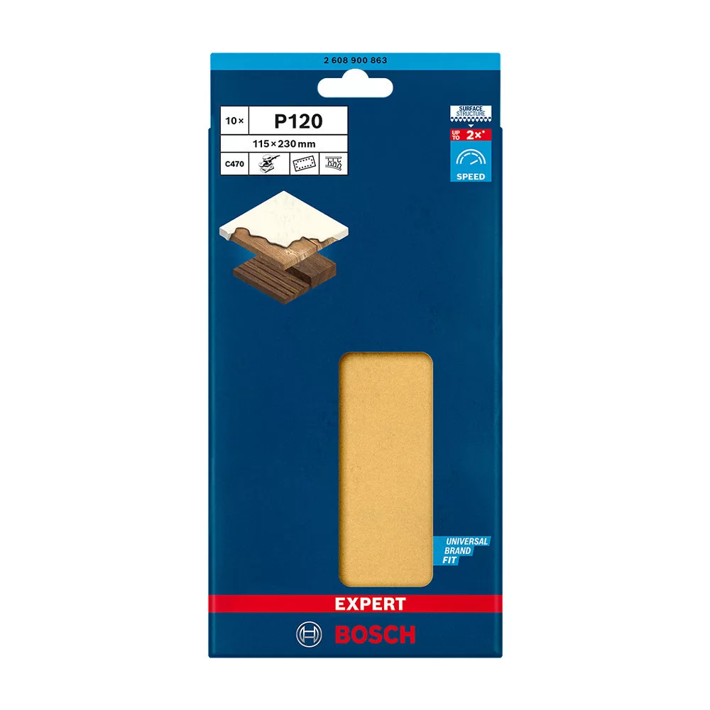 Bosch EXPERT C470 csiszolópapír rezgőcsiszolókhoz, fa, festék 115x230mm, G120 10db