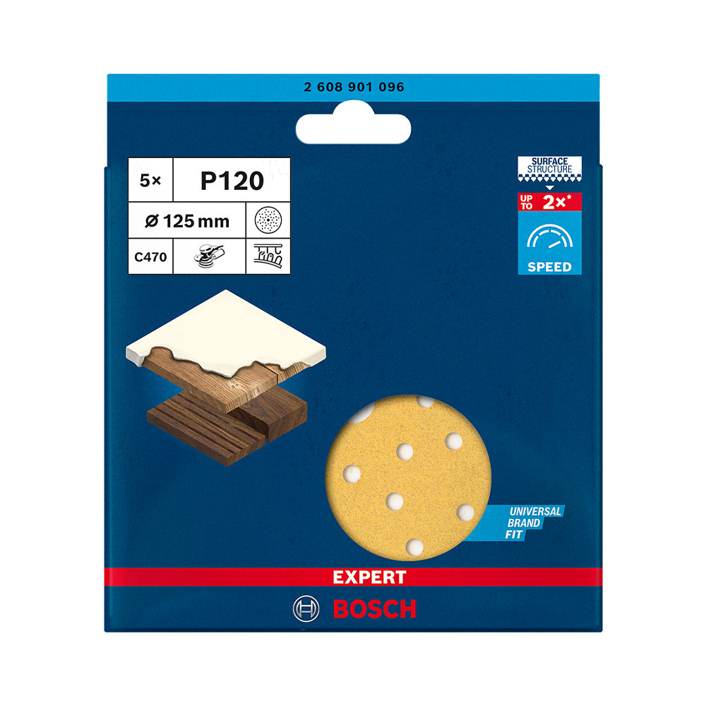 Bosch EXPERT C470 csiszolópapír excentercsiszolóra, fa, festék 125mm, G120, 5db