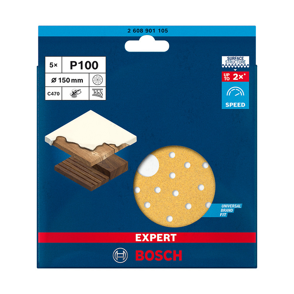 Bosch EXPERT C470 csiszolópapír excentercsiszolókhoz, fa, festék 150mm, G100, 5db
