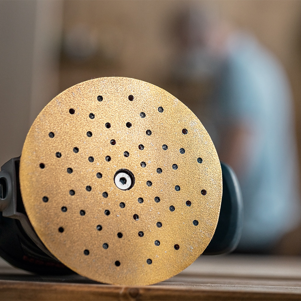 Festék és fa gyors csiszolása - A legjobb csiszolási felület elérése érdekében agresszív szemcsebeigazítási gyártási módszerünk úgy igazítja a szemcséket, hogy a legélesebb oldaluk nézzen kifelé. Ezután erős ragasztóval és eltömődésgátló bevonattal fedjük be őket. Az optimális szemcsesűrűség mellett ez maximális sebességet és minimális eltömődést biztosít. Csak ragaszd fel tépőzárral