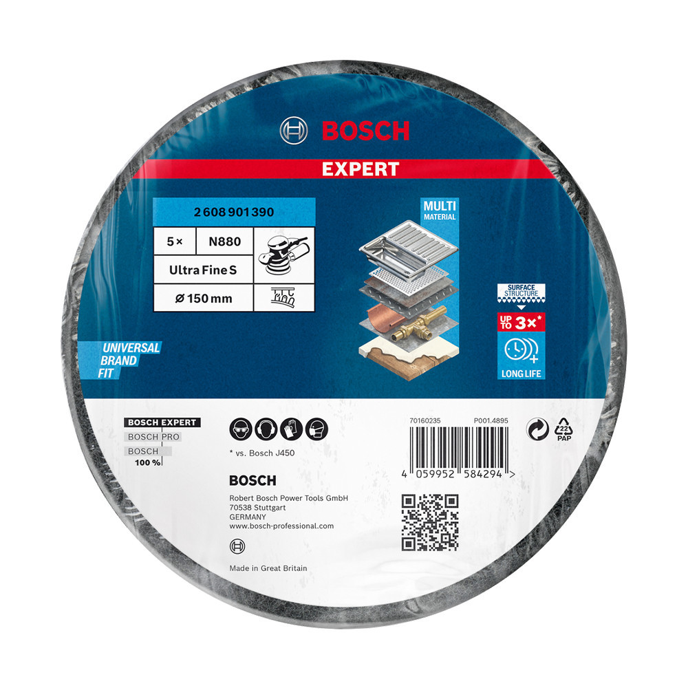 Hosszú élettartam fémek finomcsiszolásánál - Az EXPERT N880 filckorong jó példa a Bosch Surface Structure technológiájára: A legújabb csiszolási technológiát és gyártási szakértelmet ötvözi egyetlen, egyedülállóan tartós filckorongban. A háromdimenziós, keresztkötéses technológiával készült termék tartós teljesítményével pénzt takarít meg a mesterembereknek, és minimálisra csökkenti a csiszolólapok szemcsevesztése okozta frusztrációt. Csak ragaszd fel tépőzárral