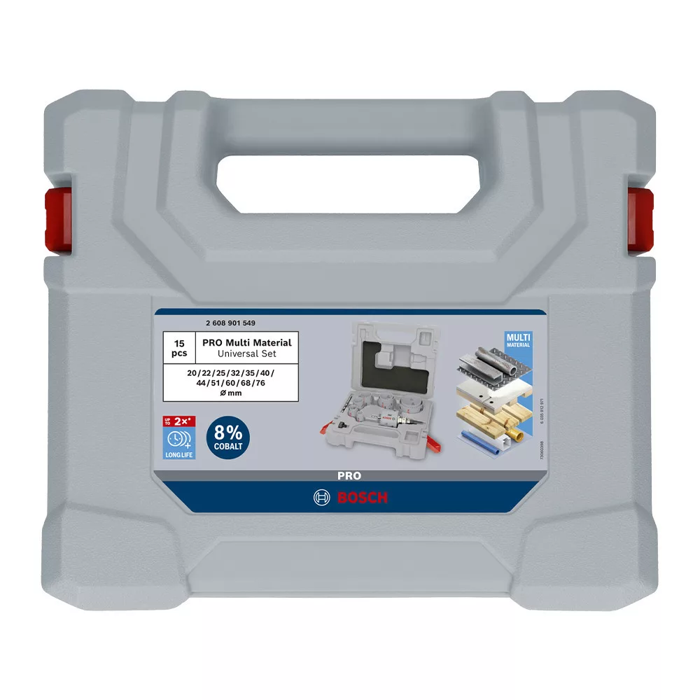 Bosch PRO Multi Material Q-Lock körkivágó készlet, 15 részes, 20,22,25,32,35,40,44,51,60,68,76mm