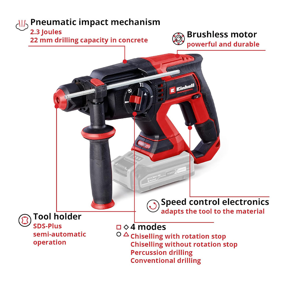 Einhell Professional akkus SDS-Plus fúró-vésőkalapács TP-HD 18/22 D Li BL - SOLO 18V