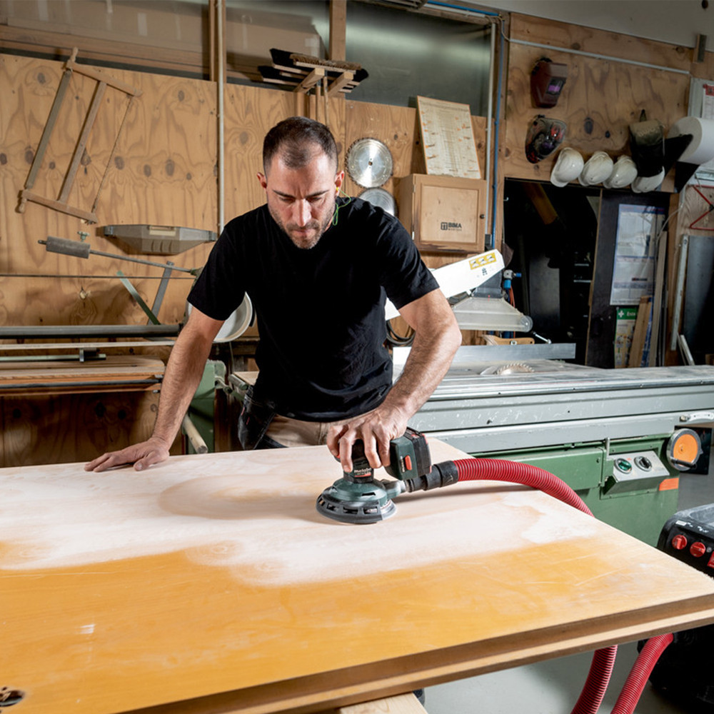 Kézreálló akkus excentercsiszoló 150 mm-es csiszolótányér-átmérővel, ami ideális nagy felületekhez
