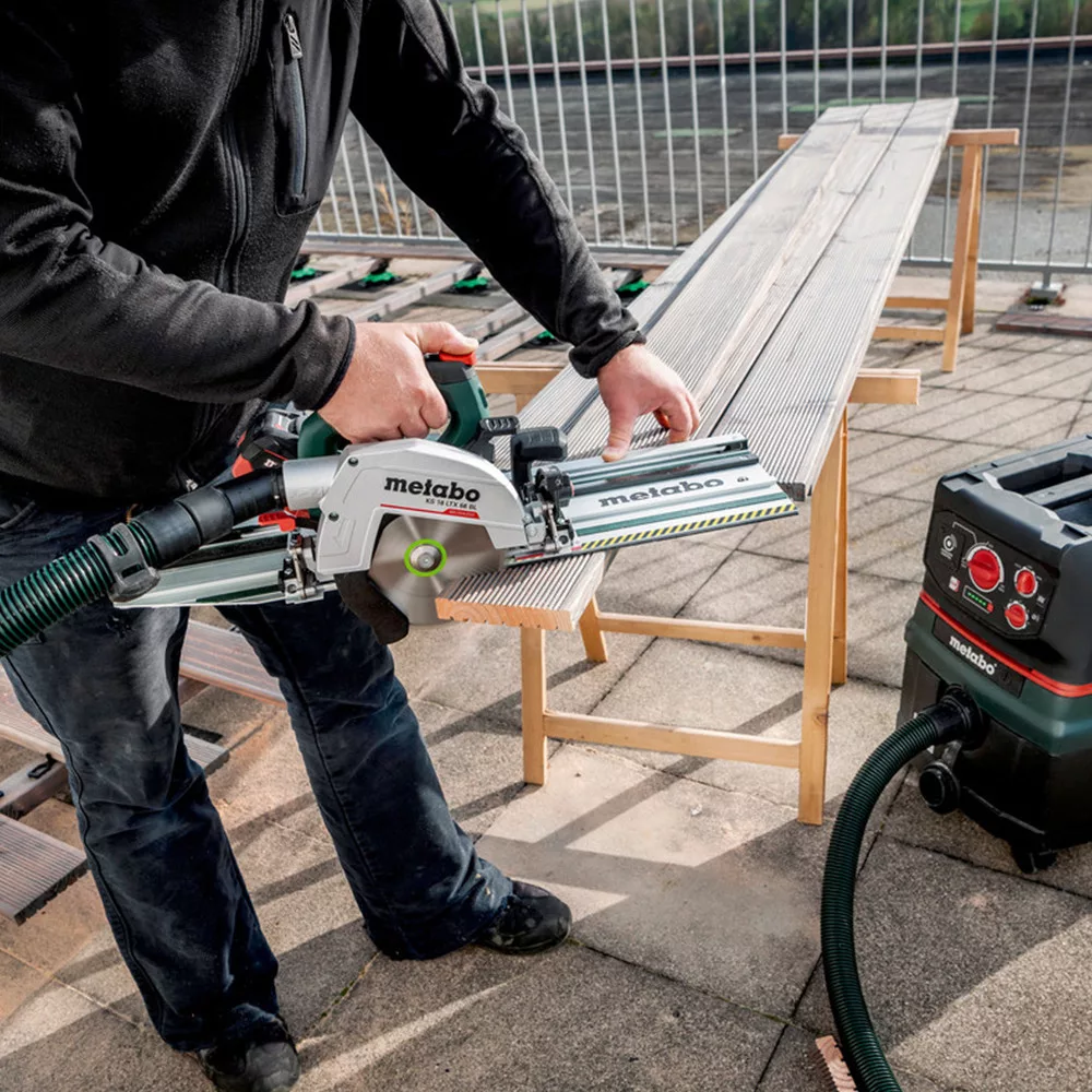 Gyors, pontos fejező vágások egy Metabo KFS fejezősínre (tartozék) való egyszerű rácsatolással