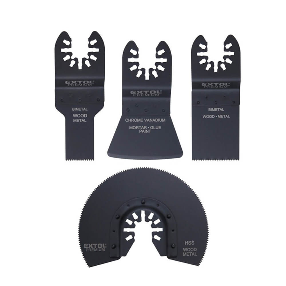Körszegmens fűrészlap: puha faanyagok, gipszkarton, műanyag és lágy fémek, pl. réz, alumínium vágásához Karbid delta csiszolólap: kemény alapanyagú felületeken való csiszoláshoz, ráspolyozáshoz, pl. habarcs vagy ragasztó eltávolítása a sérült burkolócsempék cseréjekor Merev kaparó: szilikon hézagok kikaparásához, beton maradékok eltávolításához, stb. Lyukfűrészlap: puha faanyagok, gipszkarton, műanyag és lágy fémek, pl. réz, alumínium vágásához Univerzális befogás