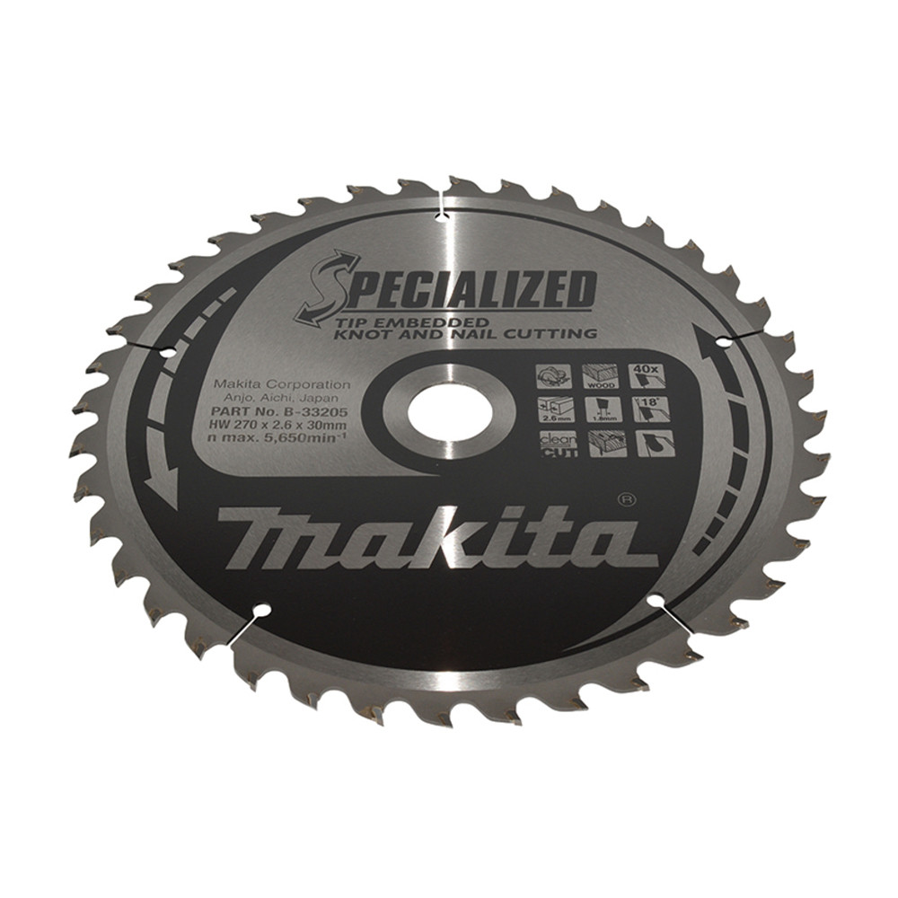 Makita körfűrészlap szöges és csomós fáhóz 270x30x2,6mm 40 fog