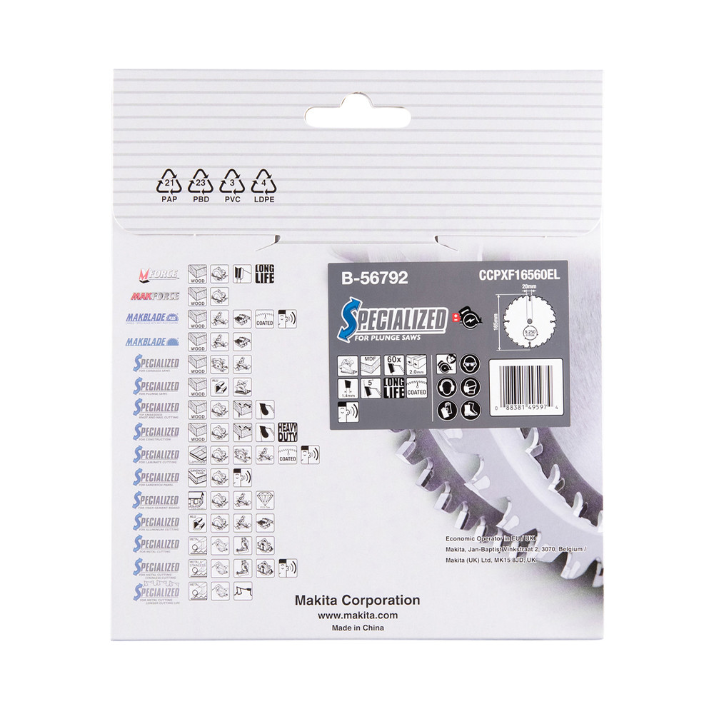 Makita merülő körfűrészlap MDF laphoz 165x20x2mm 60 fog