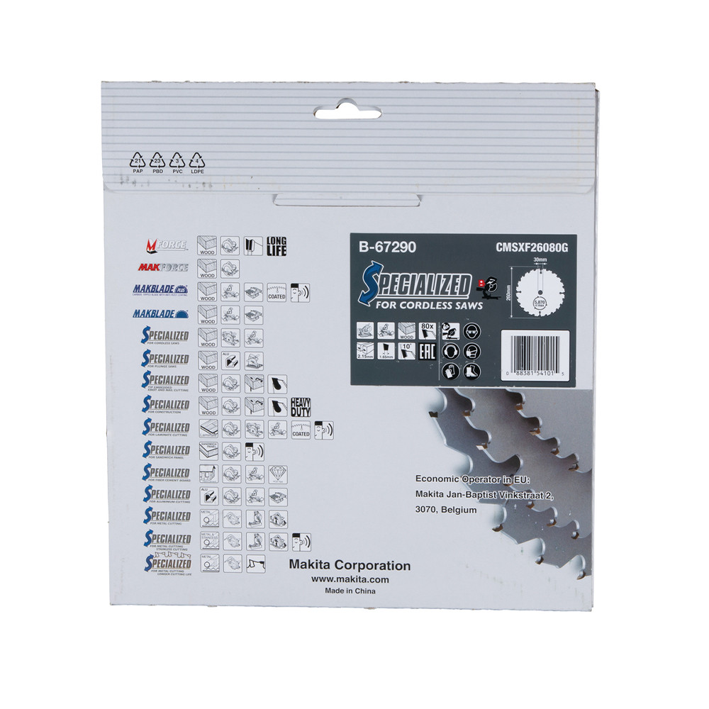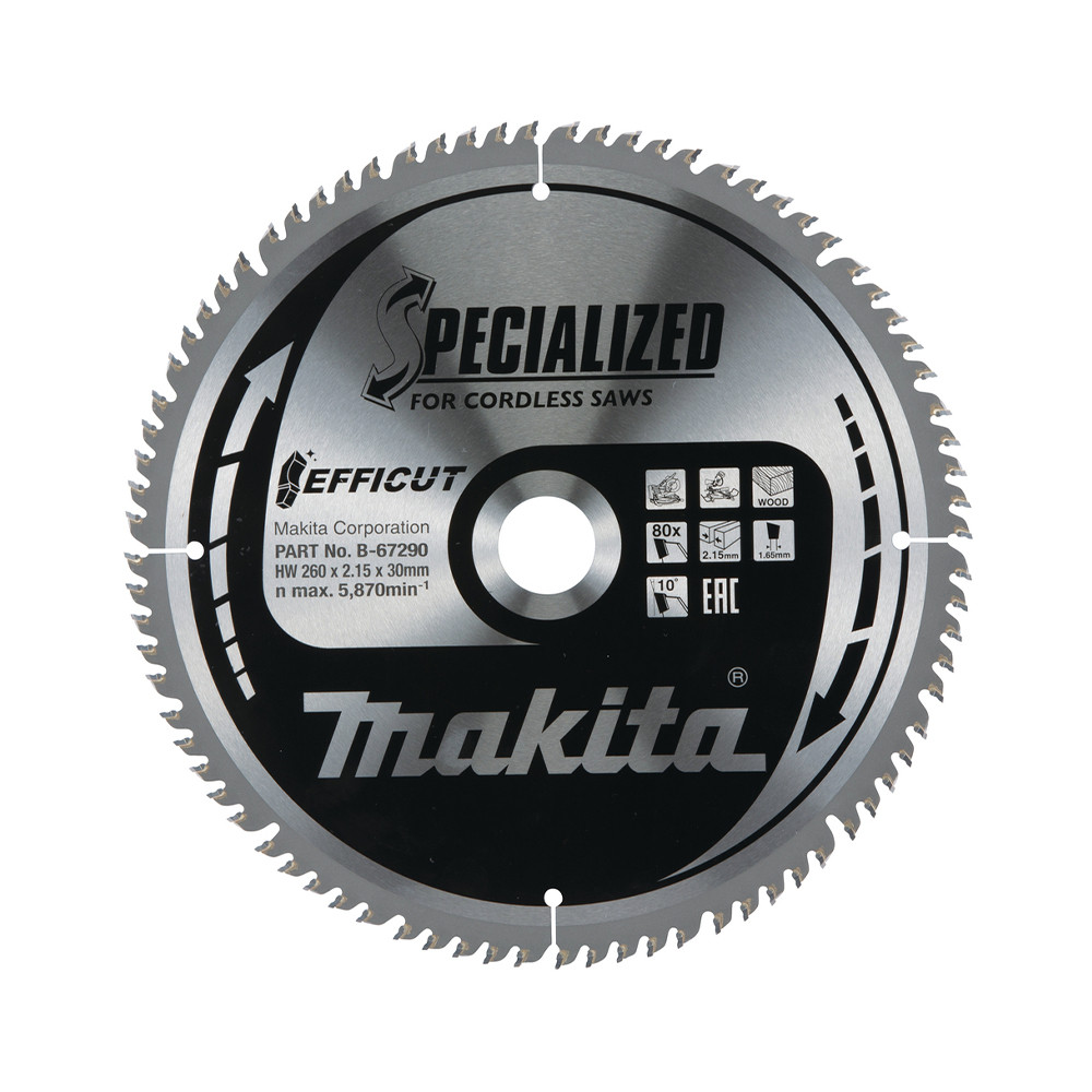 Makita EFFICUT körfűrészlap akkus géppel, fához 260x30x2,15mm 80 fog